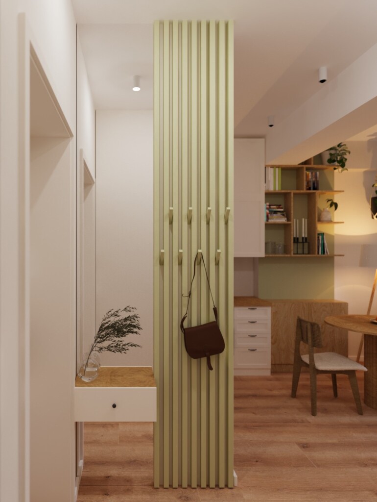 Modern style interior, bright colours with combination of scandinavic and Boho style elements.