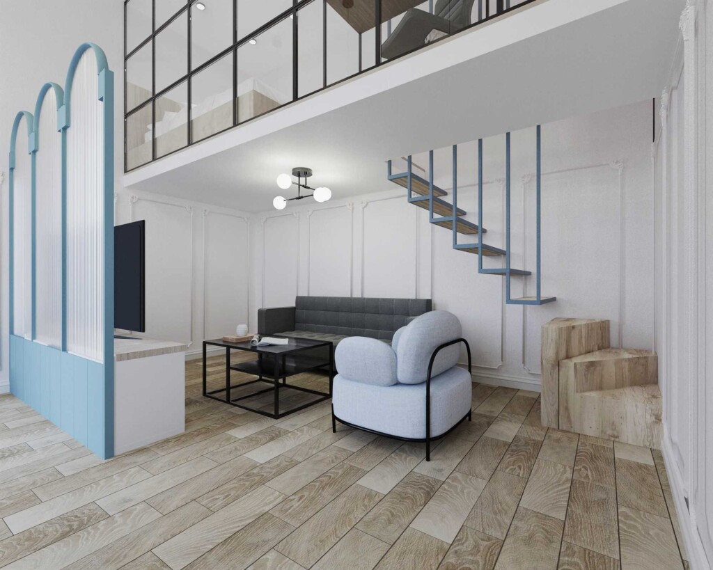 ღია ფერთა გამა, უპირატესობა ენიჭება უბრალოებას და პრაქტიკულობას. ზედმეტ დეკორზე უნდა ვთქვათ უარი. ხე, მეტალი,სარკე, ღია ფერების მიუხედავად ინტერიერი ინარჩუნებს ელეგანტურობას.