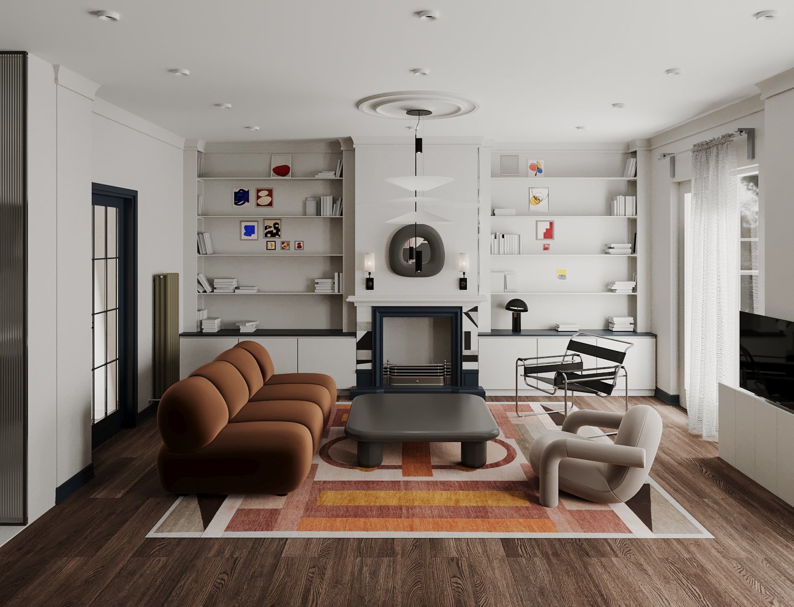 კლასიკურ სტილში გადაწყვეტილი, კერძო სახლის ინტერიერი.